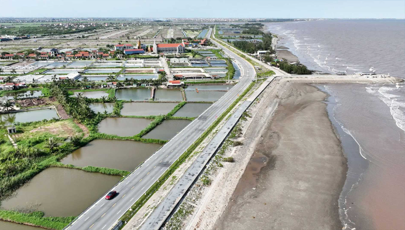 Tuyến đường bộ mới Nam Định – Lạc Quần – Đường bộ ven biển đoạn qua xã Hải Quang. Ảnh: Internet.